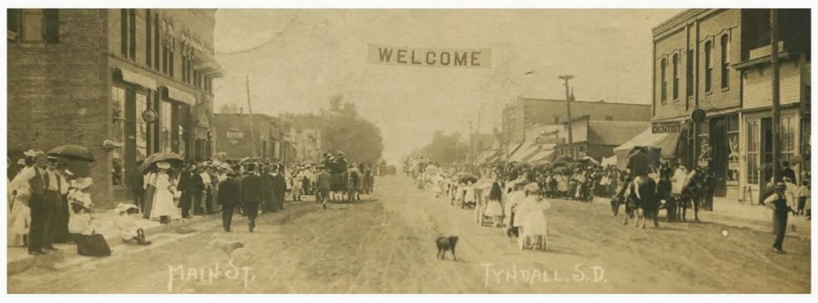 When South Dakota was officially organized as a territory by Congress in March 1861, the site of Tyndall was just part of the great rolling prairie. It became a town when the railroad came through the county. The first building was the depot and the first freight shipment was a box of rabbits, weight 100 pounds, shipped by Alois Zienert to Portage, Wisc. M.E. Talcott, agent for the Milwaukee railway, issued the receipt which was dated December 9, 1879.